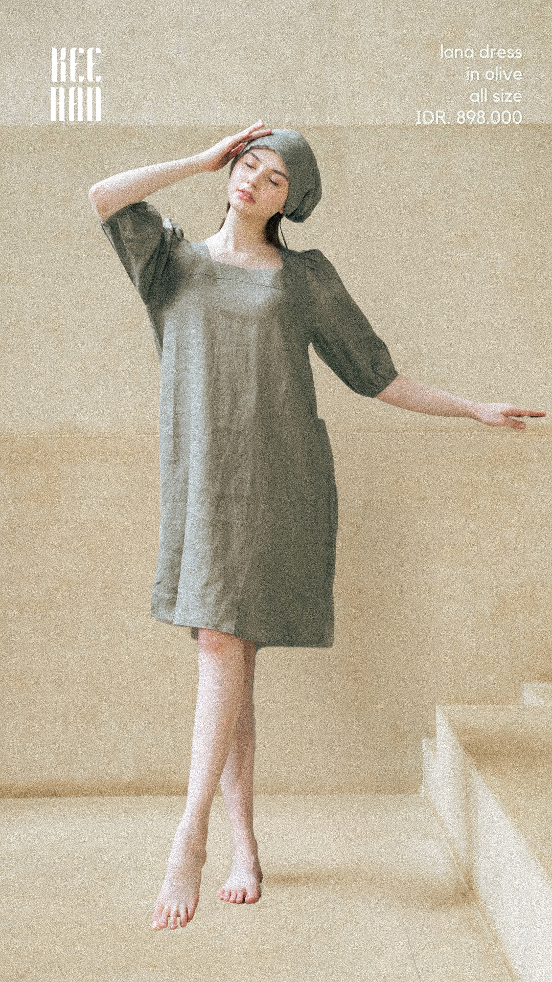 Made using pure linen material. Lana dress delivers a simple yet classic look with its loose fit model. Available in olive.